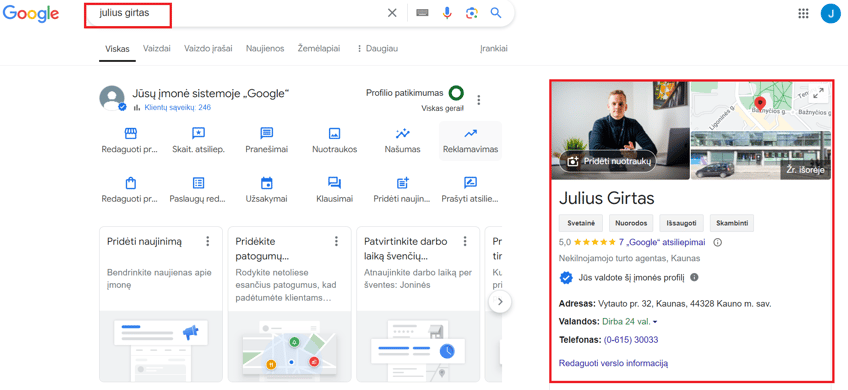 Klientai galės jus rasti ir palikti atsiliepimus google sistemoje